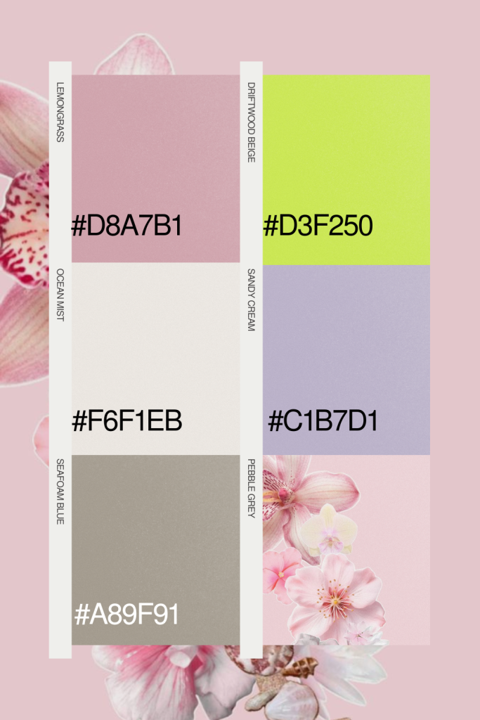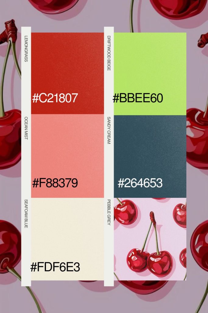 Paletas de colores que os sorprenderán y perfectas para usar en vuestros diseños de verano. Los colores que están marcando tendencia en 2025: Rojo cereza, rosa palo, amarillo mantequilla, verde lima, azul eléctrico, verde esmeralda, mocha mousse, rosa pomelo y lavanda grisácea.