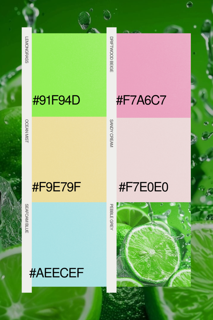 El color verde lima, ha sido la sorpresa del año y ha llegado para quedarse, vibrante, fuerte, positivo y enérgico. Igualmente, puedes usarlo en sus tonalidades más suaves, para tus diseños de estilo tropical.