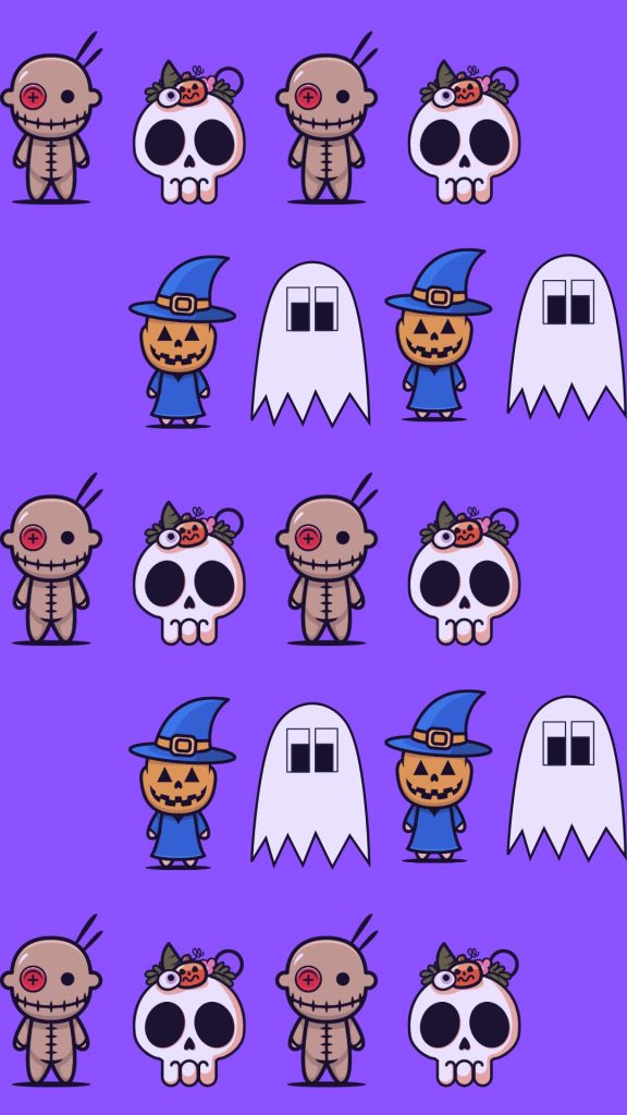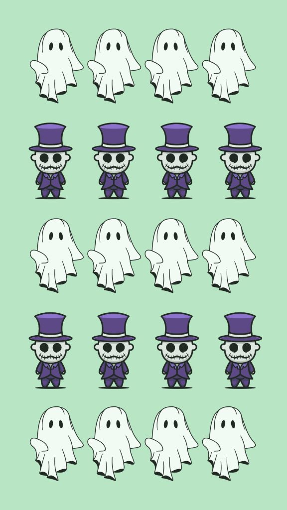 En el primer ejemplo, he colocado en línea 4 fantasmas y debajo, en línea también, 4 muñequitos para crear un pattern ordenado y original para tus diseños en las redes sociales.