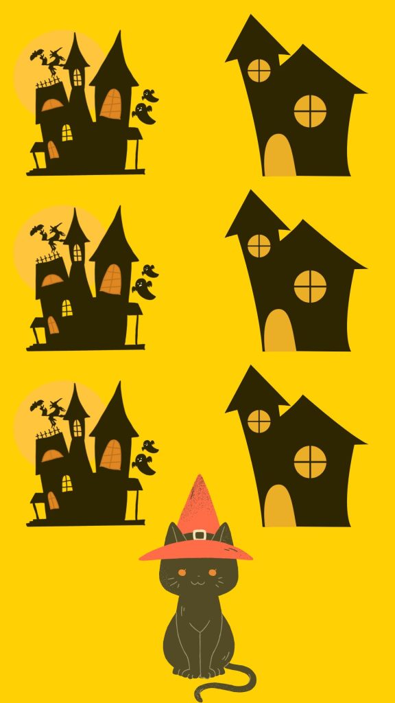 Elige elementos gratuitos de Canva de la temática Halloween, un color de fondo típico de esta fiesta y distribuye los elementos como más te guste.