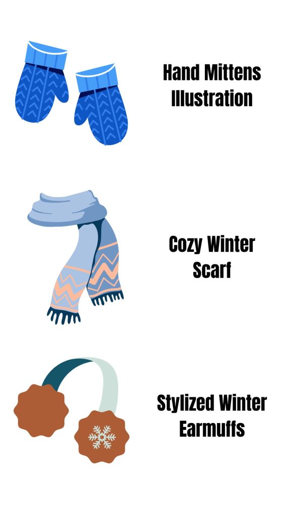 ➡️Mini selección de elementos de Canva que incluye: Guantes, Gorros, Bufandas y orejeras ¡No pases frío! 😉