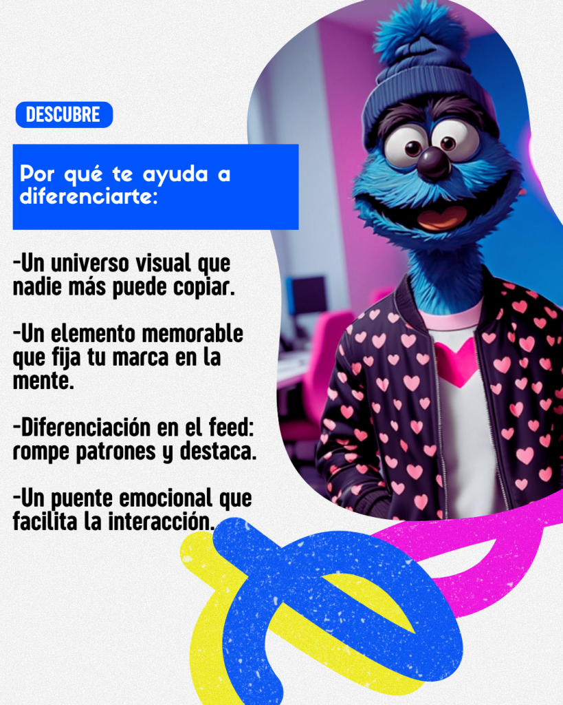 💯 Un elemento memorable que fija tu marca en la mente: las personas recordamos personajes mucho más que logos. En redes sociales, esto se traduce en: