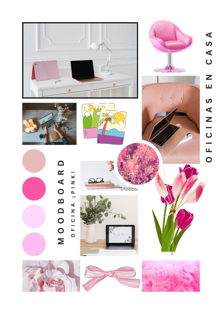 ⭐Ejemplo de moodboard de decoración para oficinas en casa ¡Pink!: