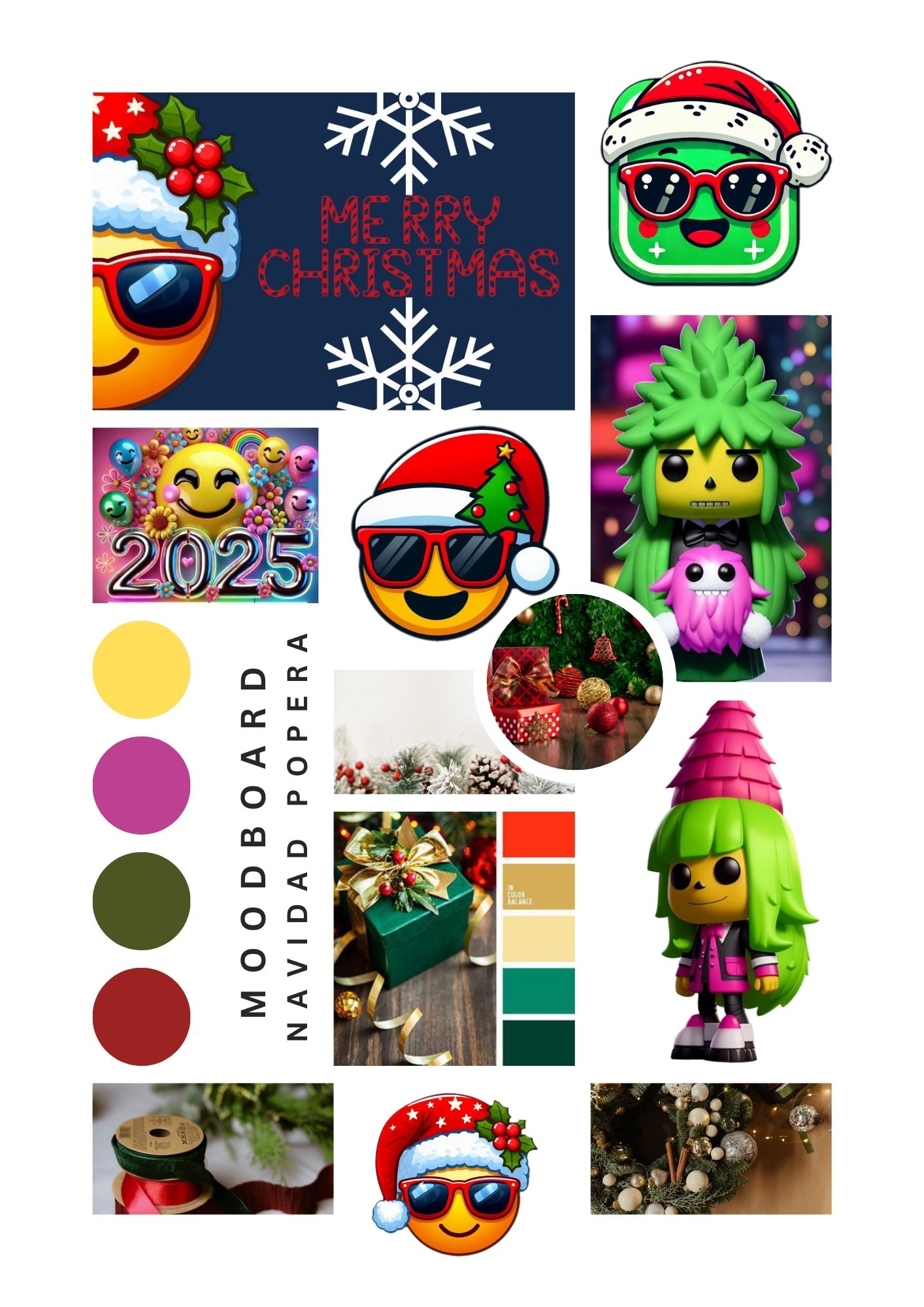 En nuestro caso, te mostramos un ejemplo de moodboard inspiración para la campaña navideña de Era Popera 💚 Personajes, colores, fotos que nos inspiraron, recursos gráficos, etc. Para reunir todas las ideas e ir dando forma de una manera más rápida y eficiente.
