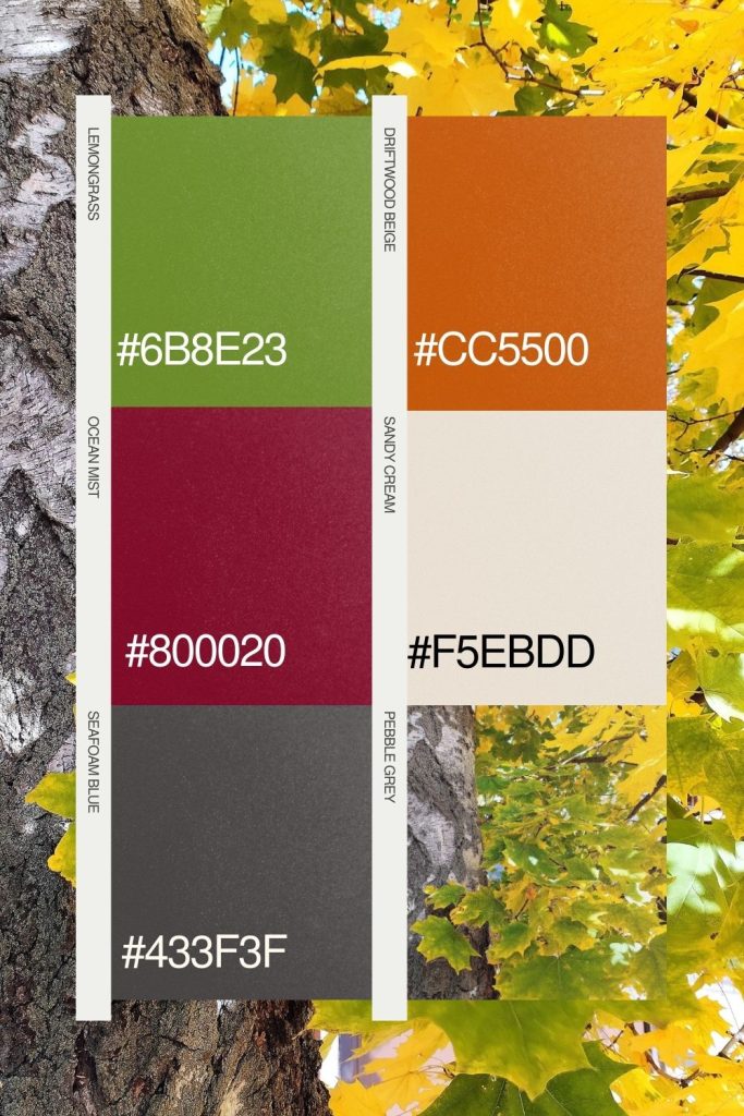 -Verde oliva + naranja quemado + borgoña: ideal para marcas con mucha personalidad.