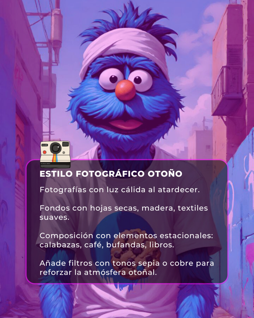 ✨ Tip: Añade filtros con tonos sepia, cobre o tipo degradado para reforzar la imagen otoñal.